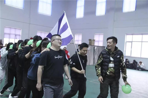看我們心連心,連著一起向前走。本游戲要求裁判宣布開始后,6名隊員首先吹氣球,并將氣球系好;將系好的氣球放于2人之間并用額頭頂住進(jìn)行前進(jìn),期間有氣球掉落則重新開始;隊伍行進(jìn)距離50米,直至最后一個人穿過終點(diǎn)線,用時最少名次越前。通過本游戲來培養(yǎng)大家的團(tuán)隊精神,提高隊員們配合、協(xié)作的能力。